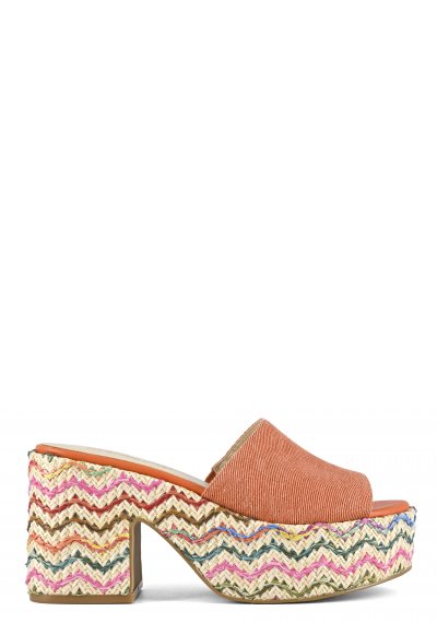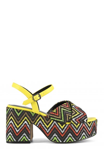 Sandalo platform in tessuto multi